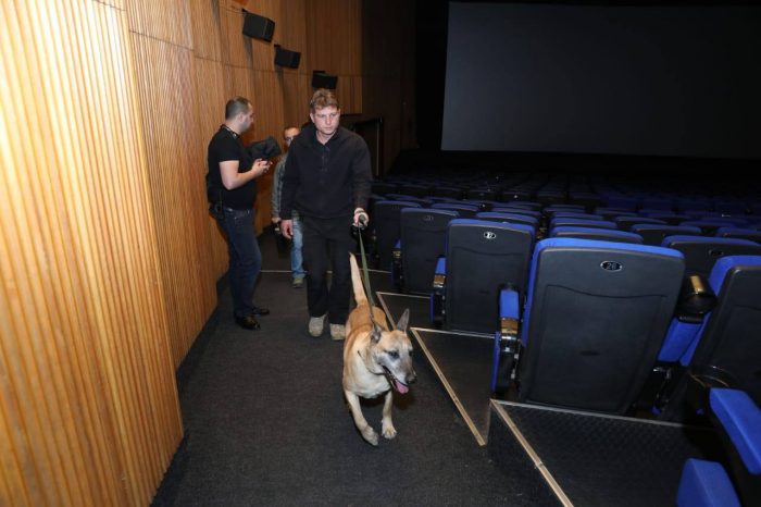 “კვირას” ინფორმაციით, კინოლოგიური სამსახურის თანამშრომლები სპეციალურად გაწვრთნილი ძაღლების დახმარებით კინოდარბაზებს ათვალიერებენ.