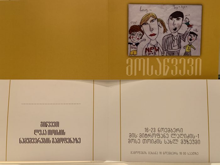 მინდა, განსაკუთრებული მადლობა მოვახსენო მოსე თოიძის სახლ-მუზეუმის პატრონებს: ქალბატონ ქეთი ბენდელიანსა და ბატონ დათა ამირეჯიბს, რომლებმაც ასეთი ნდობა და ყურადღება გამოიჩინეს დამწყები მხატვრის მიმართ. ლუკას კი ვულოცავ მის ცხოვრებაში ამ სამახსოვრო დღეს“, – აცხადებს გიორგი ლალიაშვილი.