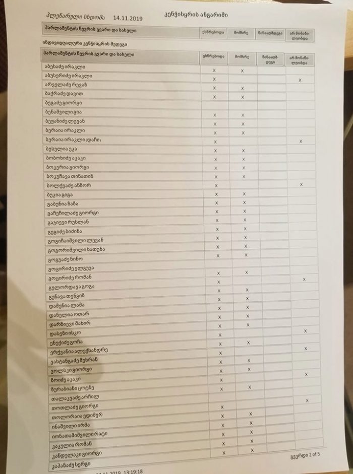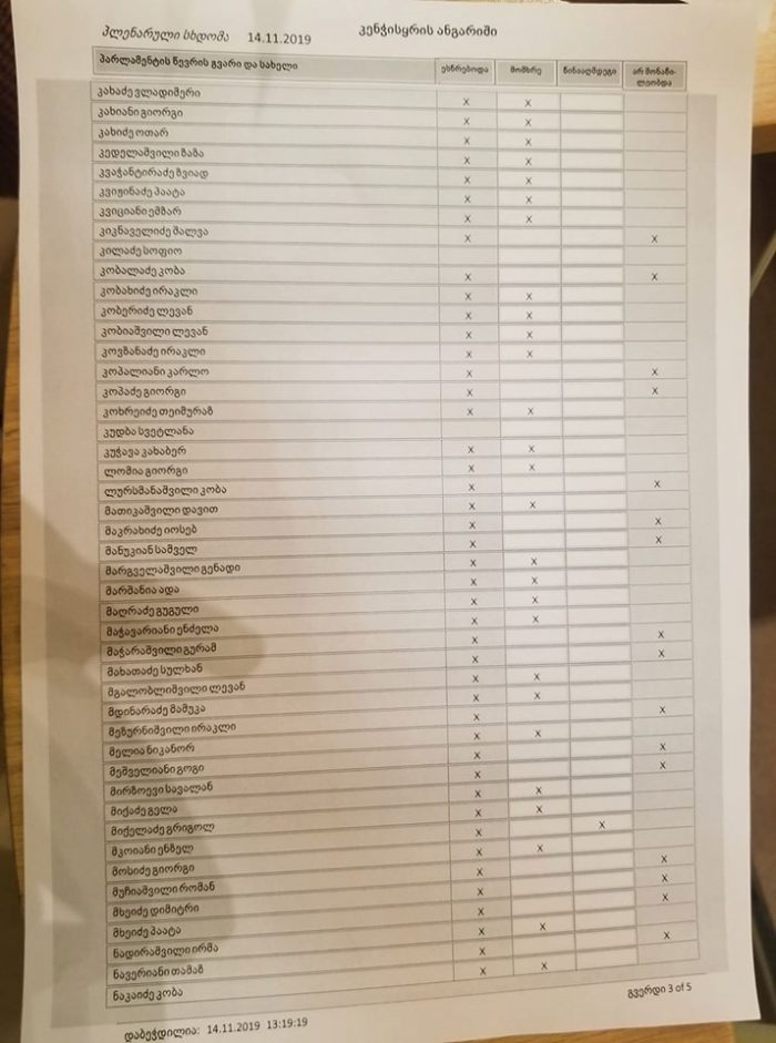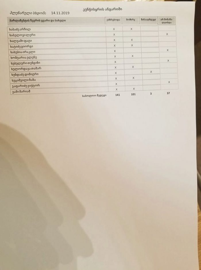 წინააღმდეგ კი 3 დეპუტატი წავიდა, თუმცა კვორუმი 113 ხმა იყო, რის გამოც კანონპროექტი ჩავარდა.