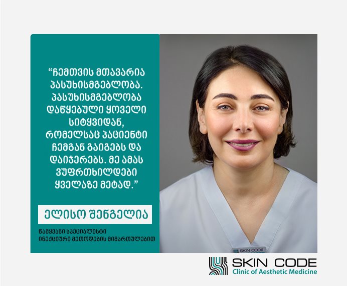 თამამად შემიძლია ვთქვა, რომ „სკინ კოდში“ ჭეშმარიტად არის ხარისხი, როგორც პრეპარატების თვალსაზრისით, ასევე პროფესიონალიზმის კუთხით.