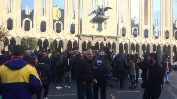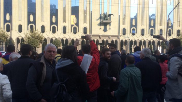 რუსთაველის გამზირზე შეკრებილმა აქციის მონაწილეებმა რუსთაველის გამზირი გადაკეტეს.