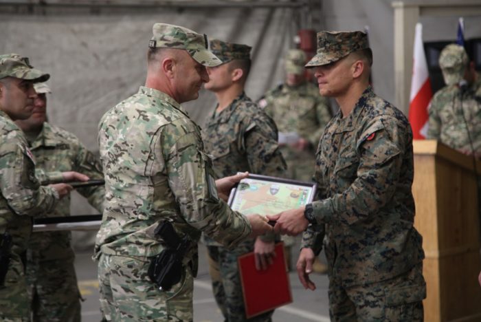 უფლებამოსილების გადაბარების ოფიციალურ ცერემონიალს ბაგრამის საავიაციო ბაზაზე დისლოცირებული სხვადასხვა ქვეყნის სამხედრო მაღალჩინოსნები და სამოქალაქო პირები დაესწრნენ.