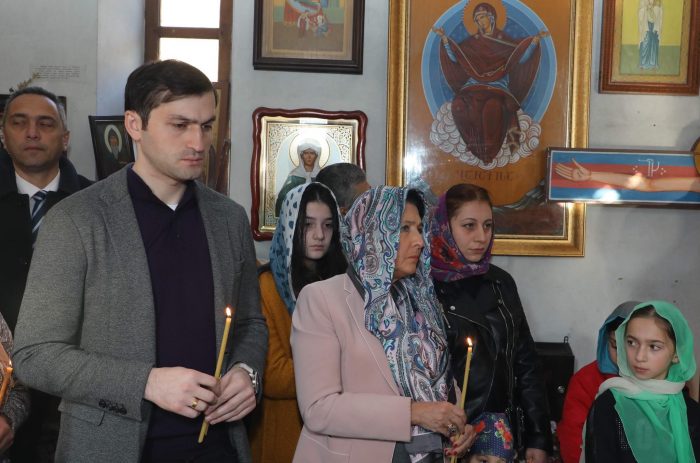 სალომე ზურაბიშვილი გიორგობის სადღესასწაულო წირვას ქედაში, ზვარეს წმინდა გიორგის სახელობის ეკლესიაში დაესწრო.