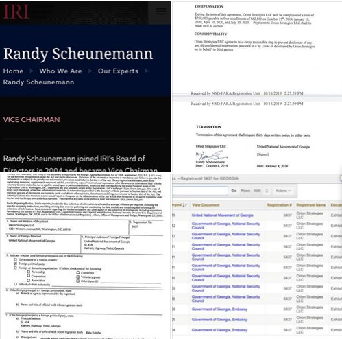 1938 წლიდან აშშ-ში მოქმედებს კანონი უცხოელი აგენტების რეგისტრაციის შესახებ [The Foreign Agents Registration Act, FARA]. ამ კანონით, ის აგენტები/ლობისტები, რომლებიც აშშ-ში ატარებენ უცხო ქვეყნების სახელმწიფოს ან უცხო ქვეყნების პარტიების პოლიტიკურ ან კვაზი-პოლიტიკურ ინტერესებს, ვალდებულნი არიან ამის შესახებ ღიად განაცხადონ, მათ შორის ფინანსურ ნაწილზეც და დარეგისტრირდნენ FARA-ს საიტზე. კანონს ადმინისტრირებას უწევს აშშ-ის იუსტიციის სამინისტროს ეროვნული უსაფრთხოების დეპარტამენტი.Orion Strategies და რენდი შენემანის ხელმოწერებიც FARA-ს ვებგვერდზეა https://efile.fara.gov/docs/5437-Exhibit-AB-20191025-38.pdf…