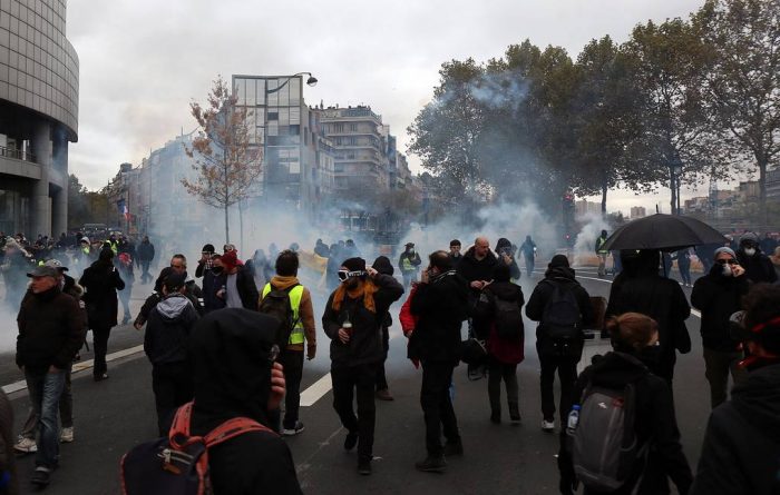 საფრანგეთში აქციებზე ცრემლსადენი გაზი გამოიყენეს – პარიზში 65 ადამიანია დაკავებული(ფოტო,ვიდეო)