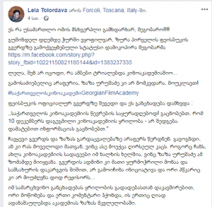 ,,საქართველოს კინოაკადემიის წევრების საყურადღებოდ! გაცნობებთ, რომ 10 დეკემბერს დაგეგმილი კინოაკადემიის ყრილობა – არ შედგება. დამატებით ინფორმაციას გაცნობებთ”.