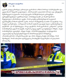 „გუშინ კიდევ ერთხელ ვიხილეთ გვარამიას არხის მორიგი სამარცხვინო და ყველანაირ ზღვარს გადასული, ამორალური ტალახის სროლა და უბედური შემთხვევის საკუთარი პოლიტიკური მიზნებისთვის გამოყენება. ეგრეთ წოდებული ჟურნალისტი, სინამდვილეში კი მიკროფონით შეფუთული კრიმინალი ჰყვება, რომ ცოტნე გამსახურდიამ საკუთარ „ფეისბუკზე“ სოზარ სუბარს აგინა, ხოლო რამდენიმე საათში ის დაჭრეს, რაც საეჭვო გარემოებაა. პირდაპირ სოზარ სუბარს დაადეს ხელი გამსახურდიას დაჭრაში. ეს ის შემთხვევაა, როცა ფიქრობ, რომ გვარამიას „კანტორა“ უარეს სიბინძურეს ვეღარ ჩაიდენს, მაგრამ კიდევ უფრო გაოგნებული რჩები, ისეთ სიბინძურეს აკეთებენ. იმედი მაქვს, ამ წარმოუდგენელ თავხედობას აუცილებლად შეაფასებენ მედიის მიმართულებით მომუშავე არასამთავრობო ორგანიზაციები და იმის იმედიც მაქვს (ან მინდა, რომ მქონდეს), რომ სახალხო დამცველიც მოახდენს რეაგირებას ამ ტალახის სროლაზე“, – წერს ირაკლი ლატარია.