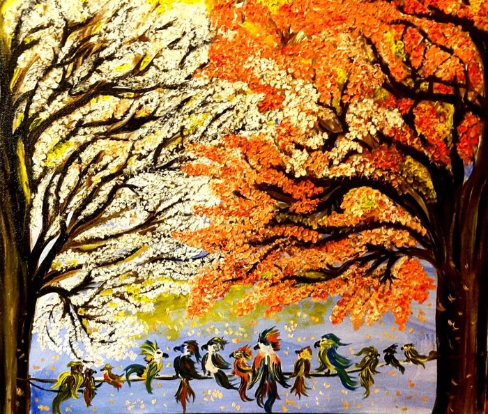 – ცხოვრებისეული გეგმაა ასახული… ხე ბედნიერებაა, ქოლგა – ოჯახი. პეპელა კი უმწეობა და დაუცველობაა.