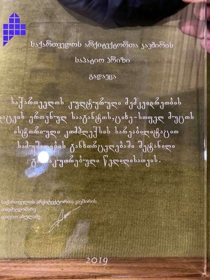მუცოს რესტავრაციის პროექტს არქიტექტორთა კავშირის ჯილდო გადაეცა