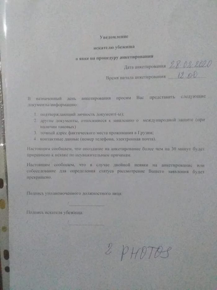 რუსმა ჟურნალისტმა საქართველოს შსს-ს თავშესაფრის თხოვნით 2019 წლის 31 დეკემბერს მიმართა. სამიგრაციო დეპარტამენტმა ანკეტირება 28 თებერვლისთვის დანიშნა.