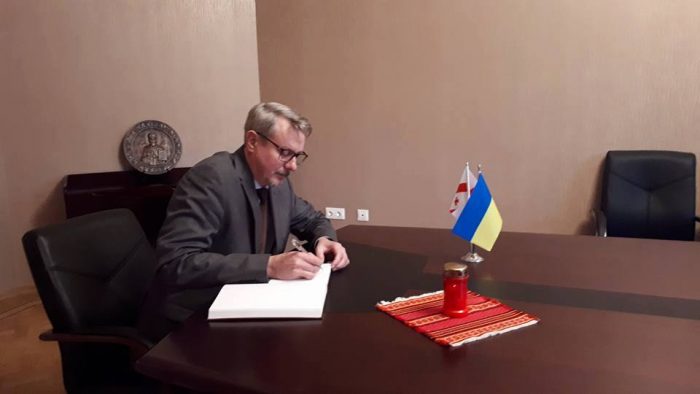 უკრაინელ ხალხს მიუსამძიმრა საქართველოში აშშ-ის ელჩის მოვალეობის შემსრულებელმა, ევროკავშირის ელჩმა და სხვა პირებმა.