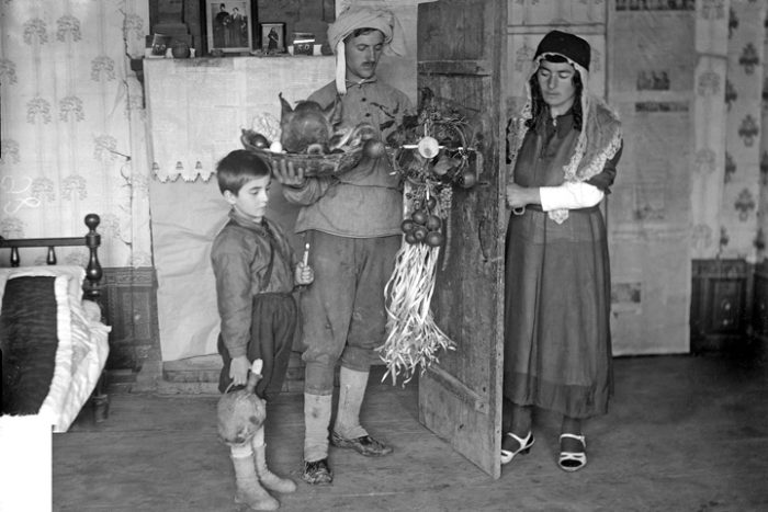 ეს ფოტო, რომელიც გურიაში XX საუკუნის 40-იან წლებშია გადაღებული, ტრადიციულ გურულ ახალ წელს – კალანდას ასახავს.