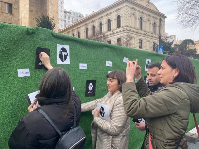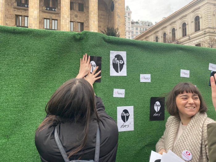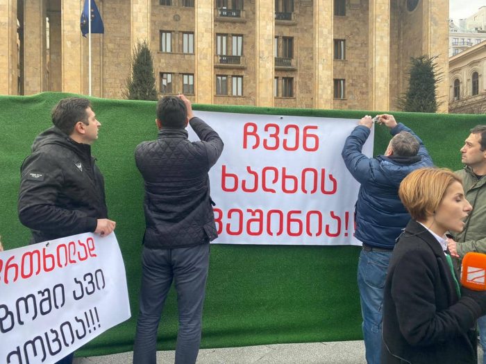 რა ვითარებაა პარლამენტთან, სადაც აქციის მონაწილეები სტიკერებს აკრავენ (ფოტოკოლაჟი)