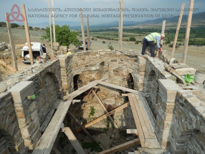 აღდგა ცენტრალური პილასტრი და კაპიტელი ნიჩბისის შერჩეული ქვით კირ-დუღაბზე;