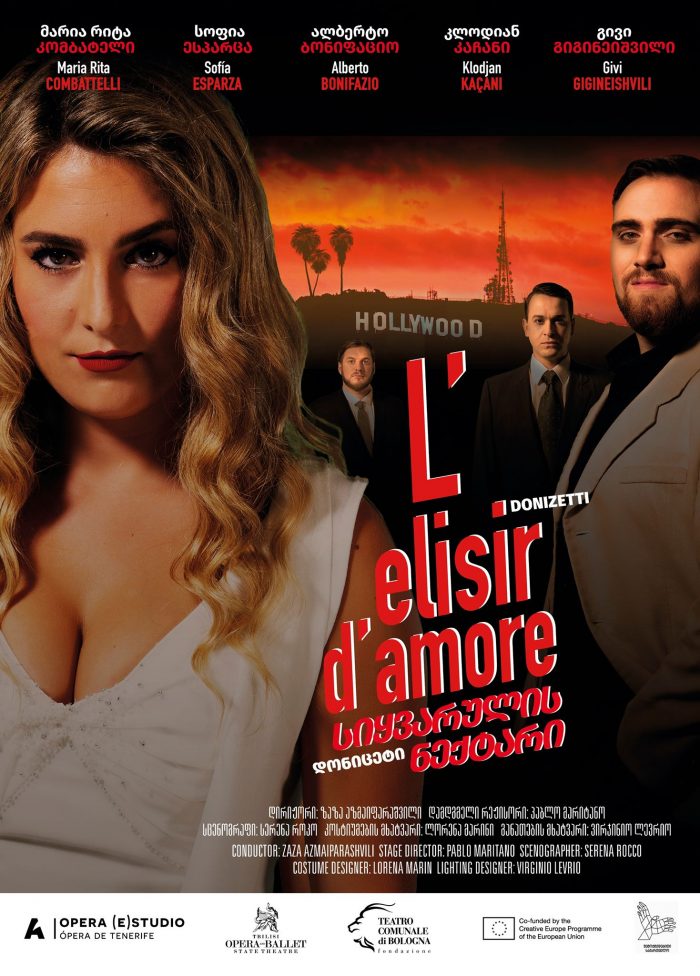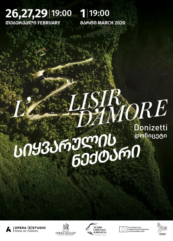 26, 27, 29 თებერვალს და 1 მარტს თბილისის ოპერისა და ბალეტის თეატრში გაეტანო დონიცეტის ოპერა „სიყვარულის ნექტარის“ პრემიერა გაიმართება. ეს დადგმა წარმოადგენს Auditorio de Tenerife-ს, თბილისის ოპერისა და ბალეტის სახელმწიფო თეატრისა და ბოლონიის Teatro Comunale-ს თანაპროდუქციას. პროექტი ხორციელდება ევროკავშირის პროგრამის „შემოქმედებითი ევროპა“ თანადაფინანსებით. ასევე პროექტს მხარს უჭერენ „შემოქმედებითი საქართველო“ და იტალიის საელჩო საქართველოში.