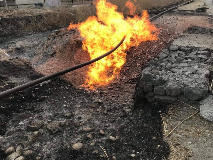 სოფელ გაჩიანში ბუნებრივი აირის მილს ცეცხლი გაუჩნდა (ვიდეო)