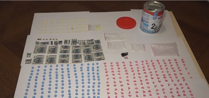 სამართალდამცველებმა, დაკავებულის პირადი ჩხრეკისას, 1 ფირფიტა ნარკოტიკული საშუალება “ლსდ” და 3 შეკვრა ახალი ფსიქოაქტიური ნივთიერება ნივთმტკიცებად ამოიღეს. დ.მ.-ს საცხოვრებელი ბინების ჩხრეკისას კი ნივთმტკიცებად ამოღებულია 553 აბი ნარკოტიკული საშუალება “მდმა”, 470 ფირფიტა ნარკოტიკული საშუალება “ლსდ”, 3 შეკვრა „მეტადონის ფუძე“ და 1 შეკვრა ნარკოტიკული საშუალება “მდმა”,”- აცხადებენ შინაგან საქმეთა სამინისტროში.