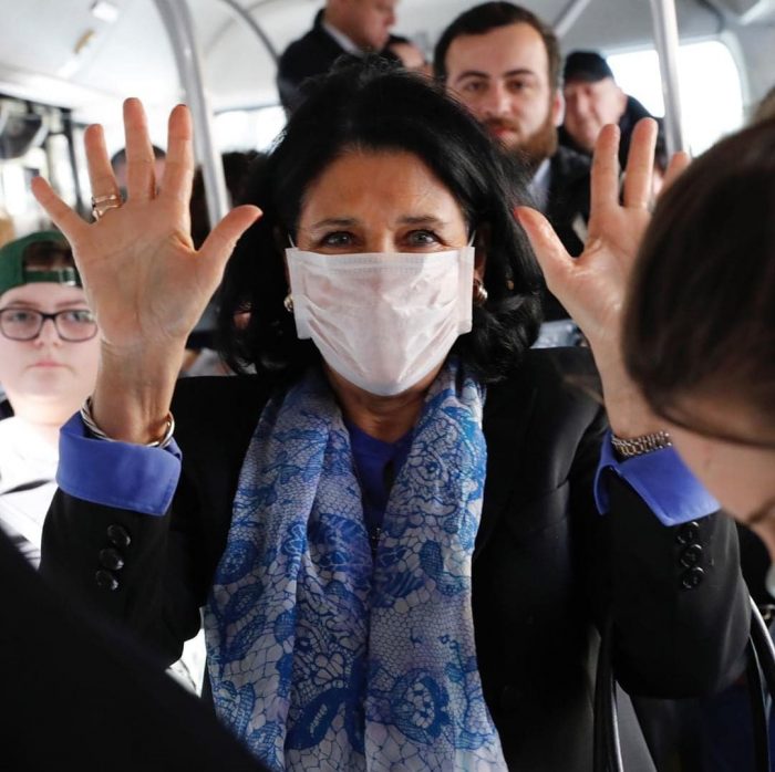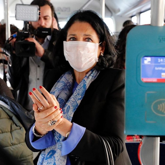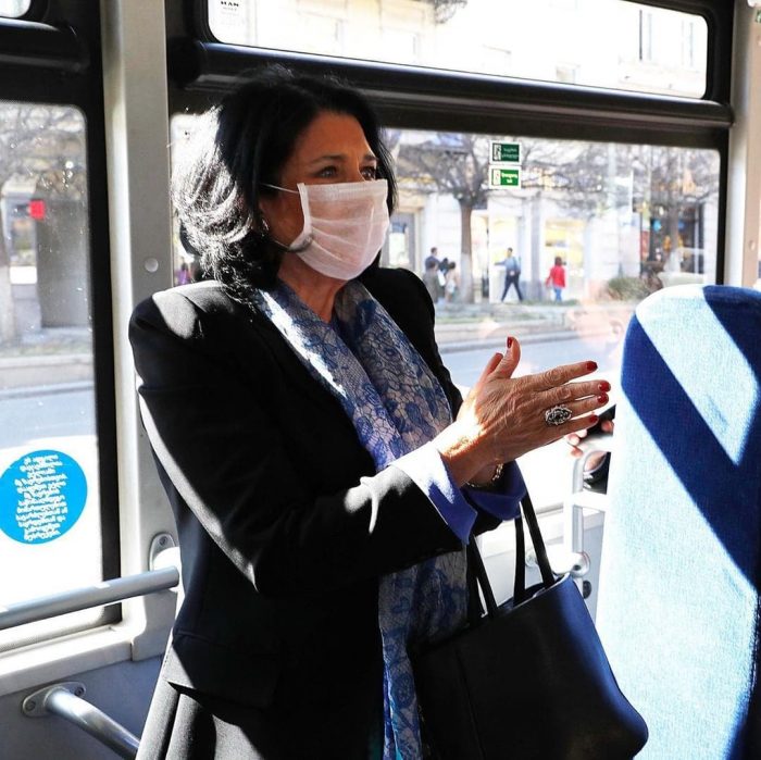 საქართველოს პრეზიდენტმა, სალომე ზურაბიშვილმა სოციალურ ქსელში კორონავირუსთან დაკავშირებული კამპანია – #SafetynotFear! (უსაფრთხოება და არა შიში) დაიწყო. მის პირად “ინსტაგრამგვერდზე” გამოქვეყნებულია ფოტოები, რომლებშიც ის ავტობუსით მგზავრობის დროს არის დაფიქსირებული და სამედიცინო ნიღაბი უკეთია.