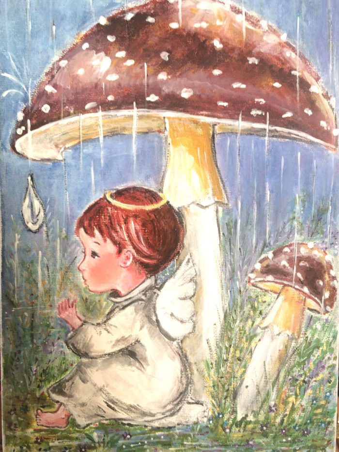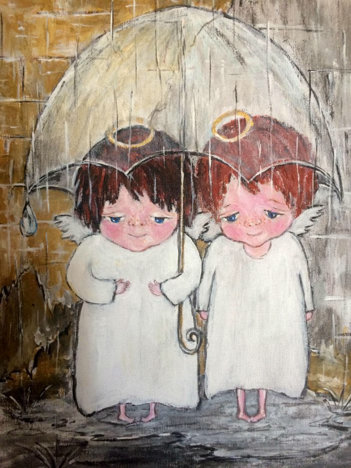 ანგელოზების ხატვისას ჩემს ბავშვებზე ვფიქრობ, ეს ბიჭი-ანგელოზი რომ დავხატე, სულ პატარა შვილიშვილს – ილიას მივამსგავსე და ხატვის პროცესში მართლა მასზე ვფიქრობდი.