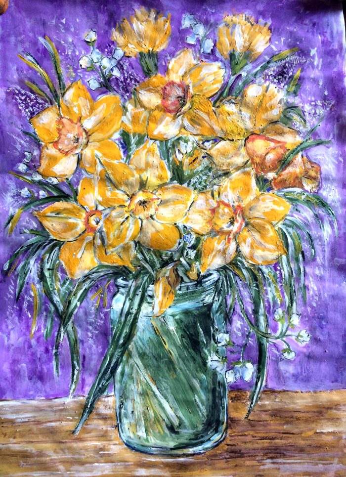 – ხატვა ისევ დავიწყე წლების შემდეგ. მანამდე ხან ვქარგავდი, ხან თექაზე ვმუშაობდი, პოლიმერული თიხით სამკაულებს ვაკეთებდი, ბავშვების პატრონს ეს უფრო მიადვილდებოდა, მაგრამ დაუკმაყოფილებლობის გრძნობა მქონდა სულ და ხატვა თავიდან დავიწყე. ყვავილებს ვხატავდი შემდეგ.