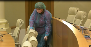 სასესიო კვირის დაწყებამდე, ახალი კორონავირუსის გავრცელების პრევენციის მიზნით, საქართველოს პარლამენტის შენობაში დეზინფექცია ჩატარდა.