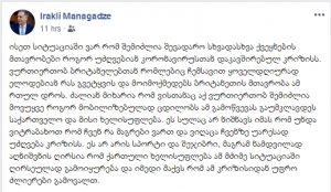 ირაკლი მანაგაძე: ნამდვილად აღნიშვნის ღირსია, რომ ქართული ხელისუფლება ამ მძიმე სიტუაციაში ღირსეულად გამოიყურება