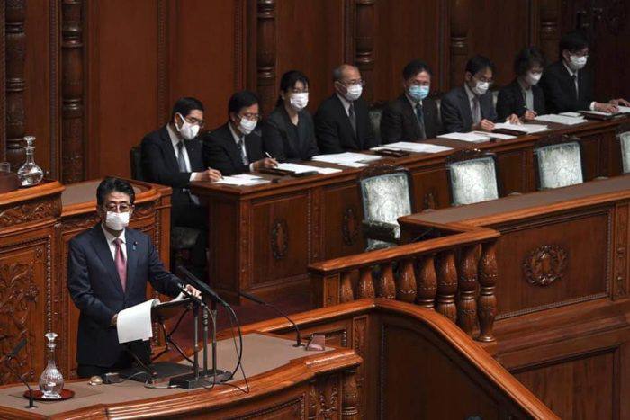 აბაშიძე იაპონიის პრემიერის ფოტოებს აქვეყნებს, რომელზეც ის დოლბანდის პირბადითაა ასახული.