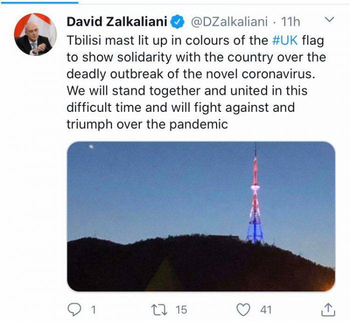 კორონავირუსთან ბრძოლაში დიდი ბრიტანეთისა და ჩრდილოეთ ირლანდიის გაერთიანებული სამეფოს მხარდასაჭერად, თბილისის ანძა დიდი ბრიტანეთის დროშის ფერებში განათდა.