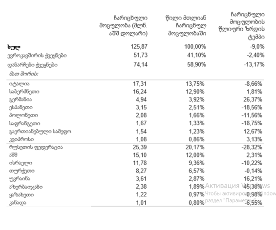 ეროვნული ბანკის ინფორმაციით, მიმდინარე წლის მარტში საქართველოში შემოსული ფულადი გზავნილები, გასული წლის იმავე პერიოდთან შედარებით, ევროკავშირის ქვეყნებიდან 2.4%-ით, ხოლო რუსეთის ფედერაციიდან 28.3%-ითაა შემცირებული.