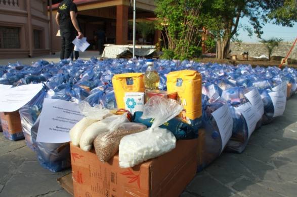 სოციალურად დაუცველ ოჯახებს დაურიგდათ ფქვილი, ბრინჯი, მაკარონი, წიწიბურა, შაქარი, ზეთი, მარილი და ჩაი.