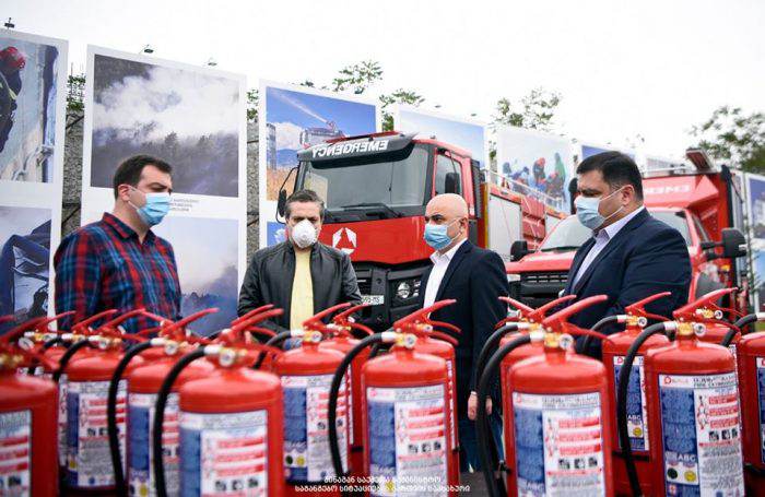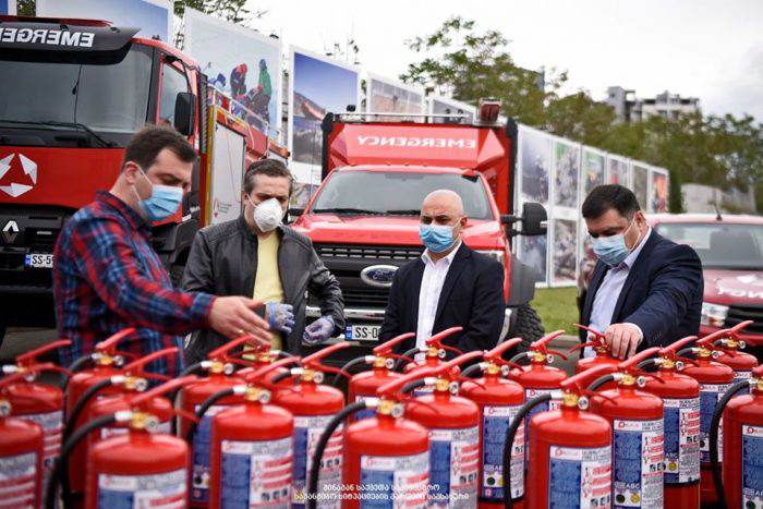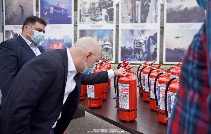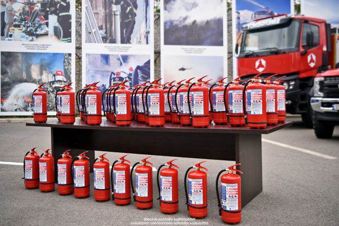 საგანგებო სიტუაციების მართვის სამსახურს შპს „ელ+“-სგან ქართული წარმოების 300 ცეცხლმაქრი გადაეცა (ფოტოკოლაჟი)