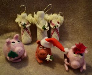 – სწავლის პარალელურად ხელნაკეთ ნივთებს ქმნიდით… საახალწლოდ თექის ცხოველების ფიგურებს – გოჭებს, ანგელოზებს, ასევე სააღდგომო კვერცხებს… რომელ ნამუშევარს გამოარჩევდით?