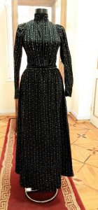 თქვენ წინაშეა 1899-1900 წლების ფრანგული კაბა, პარიზში შეკერილი, ასეთი კაბები ეცვათ თბილისელ ლამაზმანებს, ორთაჭალის ბაღსა და ვორონცოვზე მოსეირნე „კოკეტკებს”.