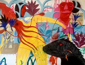 – თქვენს ნახატებზე ხელოვანის სიზმრები და ხილვებია აღბეჭდილი, რომლებიც, თითქოსდა, პირველყოფილების შეგრძნებას ბადებენ, რაც მკვეთრი ფერებითაა გადმოცემული… ანუ ფერები მეტყველებს. როგორ ახერხებთ, დაავიწყოთ 21-ე საუკუნის მნახველს რეალობა და ასეთ ჭრელ, თავბრუდამხვევ სამყაროში ამოგზაუროთ?