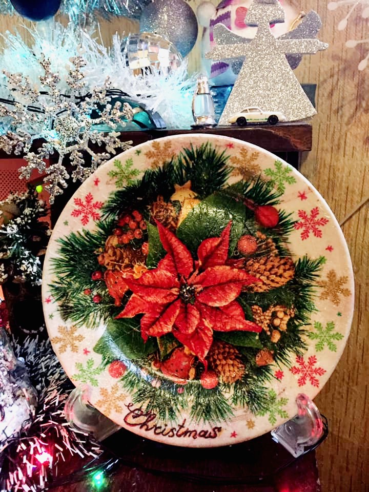 – საახალწლო აქსესუარებზე მუშაობა დავიწყე ჯერ ნაძვის ხის პატარა დეკორაციებით, შერეული ტექნიკით. შემდეგ გადავედი თეფშების მოხატვაზე, დაბოლოს – ბოთლებზე.