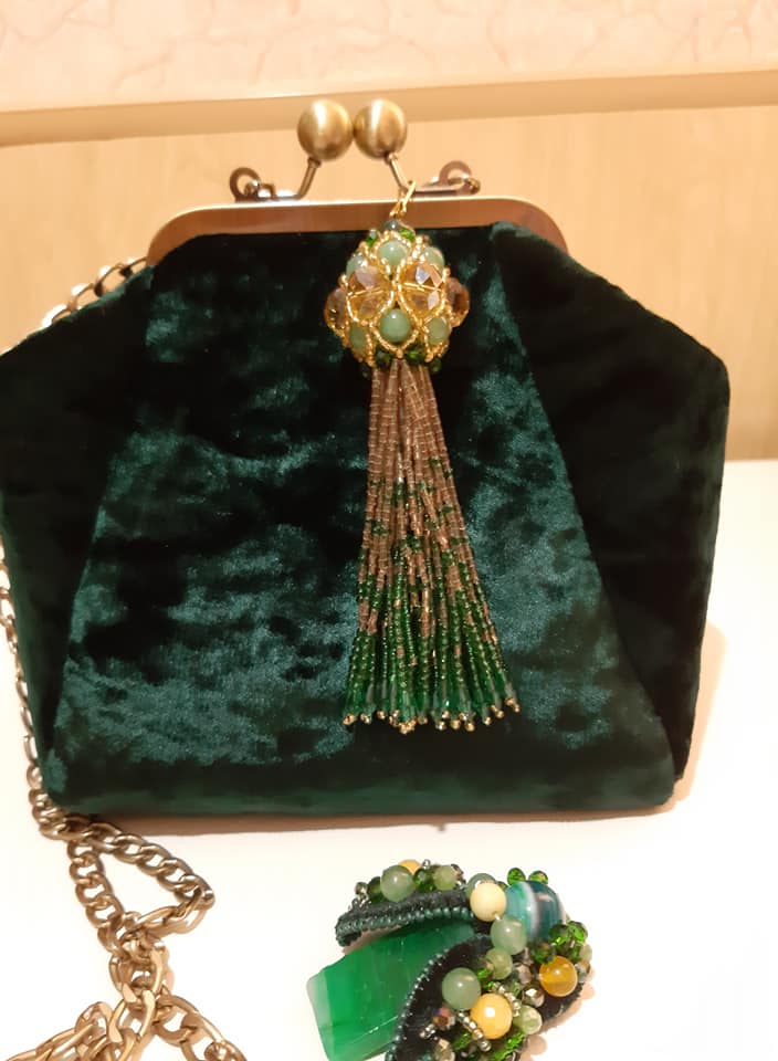– ხელჩანთებს სეზონის მიხედვით ამზადებთ, გამოირჩევა თბილი შემოდგომისფერი ხავერდის ჩანთები, ასევე ზაფხულის ჩანთები, ნეფრიტის, ჩაროიტის და აქატის ხოჭოებით…