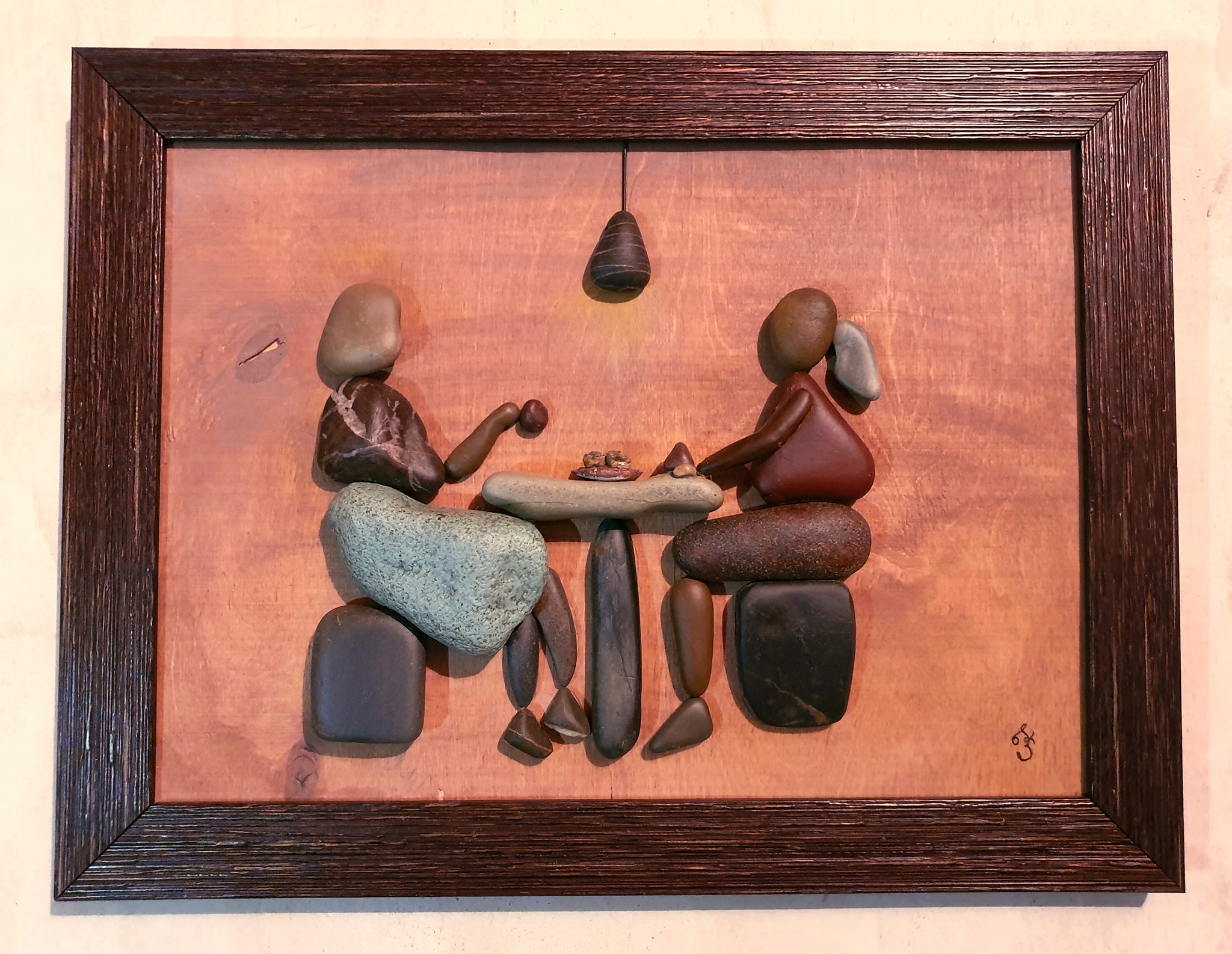 – ჩემი პროფესია დღესდღეობით ძალიან მეხმარება ქვანიჭის შექმნაში. ქვებში უკვე სრულყოფილ ფიგურებს ვხედავ წინასწარ და ფონსაც შესაბამისად ვურჩევ. ზოგჯერ ფონს ძალიან მინიმალისტურად ვხატავ, ზოგჯერ კი არის ქვების ისეთი თანწყობა, რომელიც უნდა აამეტყველო და ეს ასეთ შემთხვევაში სწორედ ფონს შეუძლია. ყველაზე რთული პროცესი მაინც ქვის ფიგურების მოძიება და ერთმანეთზე მორგებაა. თუმცა ეს იმდენად დიდ სიამოვნებას მანიჭებს, სირთულედ ვერც აღვიქვამ.