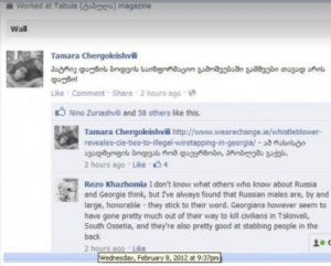 აღსანიშნავია, რომ 2012 წელს ქართულ საინფორმაციო საშუალებებში პატრიკ დაუნის შესახებ მასალის გამოქვეყნება მკვეთრად უარყოფითად შეაფასა ჟურნალ „ტაბულას” რედაქტორმა, ეროვნული უშიშროების საკითხებში საქართველოს პრეზიდენტის თანაშემწის, ეროვნული უშიშროების საბჭოს მდივნის, გიგა ბოკერიას მეუღლე თამარ ჩერგოლეიშვილმა. მან პატრიკ დაუნის მონათხრობი ბოდვად შეაფასა. მისი სტატუსის სქრინი მოგვყავს იმ სახით, რა სახითაც იდო ,,ფეისბუქზე,, გამოქვეყნებიდან ორი საათის შემდეგ.