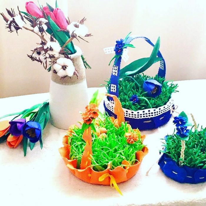 – სააღდგომოდ გადავწყვიტე ჯეჯილისა და კალათის გაკეთება. მასალა ისევ ფოამირანია. კვერცხებს კი მე ვღებავ და პენოპლასტია.