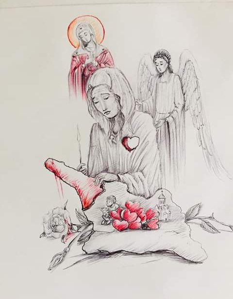 ემიგრანტ დედებზე შექმნილ ნახატს გამოვყოფ, რადგან ემიგრაცია დღეს საქართველოს მოურჩენელი ტკივილია. დავხატე დედა, რომელსაც გული აქვს ამოგლეჯილი და საქართველოს მიწაზე დევს, სადაც ზის შვილი. დედას ხელში სანთელი უჭირავს, ღვთისმშობელი და მფარველი ანგელოზი კი გამძლეობას ჰმატებენ.