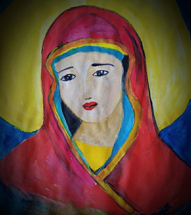 აღწერა: მუქი ტონები გამოხატავს მის ყოველდღიურ, რთულ, დამღლელ და გაჭირვებით სავსე ცხოვრებას, ხოლო ნათელი ფერები – მის დამოკიდებულებას ბუნებასთან და გარე სამყაროსთან, ის ბუნებასთან პოულობდა შვებას და მისი სამყაროც, შესაბამისად, ფერადი იყო, ხოლო მოვარდისფრო ტონები მისი სისხლი და ცრემლებია…