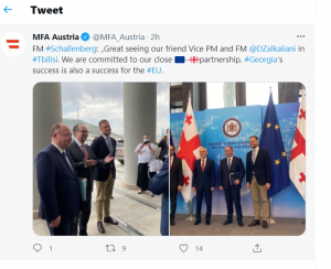 ავსტრიის საგარეო საქმეთა მინისტრი: საქართველოს წარმატება მთლიანად ევროკავშირის წარმატებაა