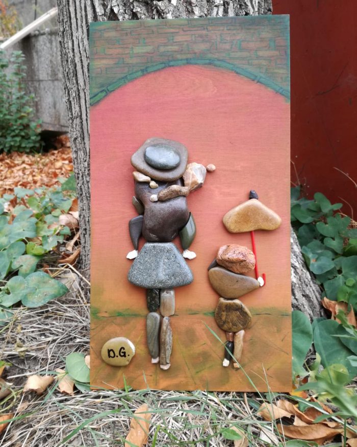 ძნელია, როდესაც ვიღაცას ელოდები და იგვიანებს და დროის გაყვანის მიზნით ადგილზე ვცადე გამეკეთებინა ქვებით რაიმე. დღევანდელი გადმოსახედიდან თუ შევხედავ, ვფიქრობ, მარტივი ფორმები იყო, მაგრამ მაშინ მე თვითონ გამიკვირდა. ასე რომ, ეს ქვები მოვათავსე ზურგჩანთაში და სახლში მისვლისთანავე გავაკეთე. აქედან დავიწყე საქმეს, რომელიც მაბედნიერებს.