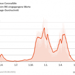 ამჟამად, გერმანიაში ვაქცინის, სულ მცირე, ერთი დოზით აცრილია მოსახლეობის 64%, 58%-ზე მეტმა ორივე დოზა მიიღო.