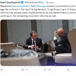 მთავრობის მეთაურის თქმით, მან ევროპული საბჭოს პრეზიდენტი კიდევ ერთხელ დაარწმუნა, რომ საქართველო 19 აპრილის შეთანხმებით გაწერილი რეფორმების დღის წესრიგის ერთგული რჩება.