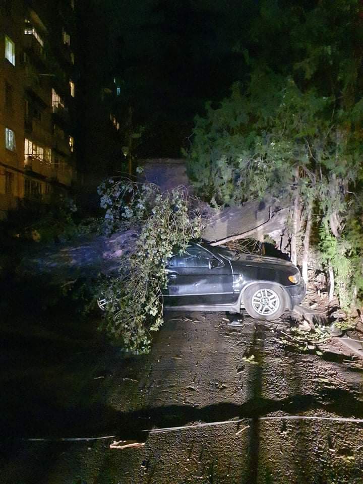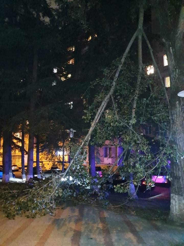 თბილისში, ყაზბეგის გამზირზე ძლიერმა ქარმა ხე მოგლიჯა, რომელიც ავტომობილს დაეცა.