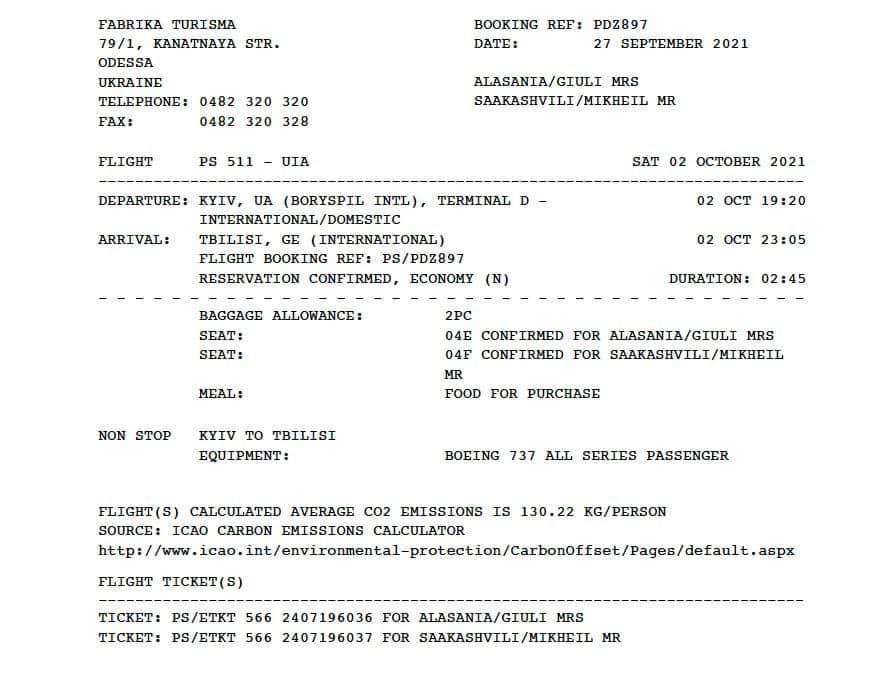 საქართველოს ყოფილი პრეზიდენტი მიხეილ სააკაშვილი აცხადებს, რომ ბილეთი 2 ოქტომბრისთვის შეიძინა. ამის შესახებ სააკაშვილმა “ფეისბუქზე” ვიდეო მიმართვაში განაცხადა.