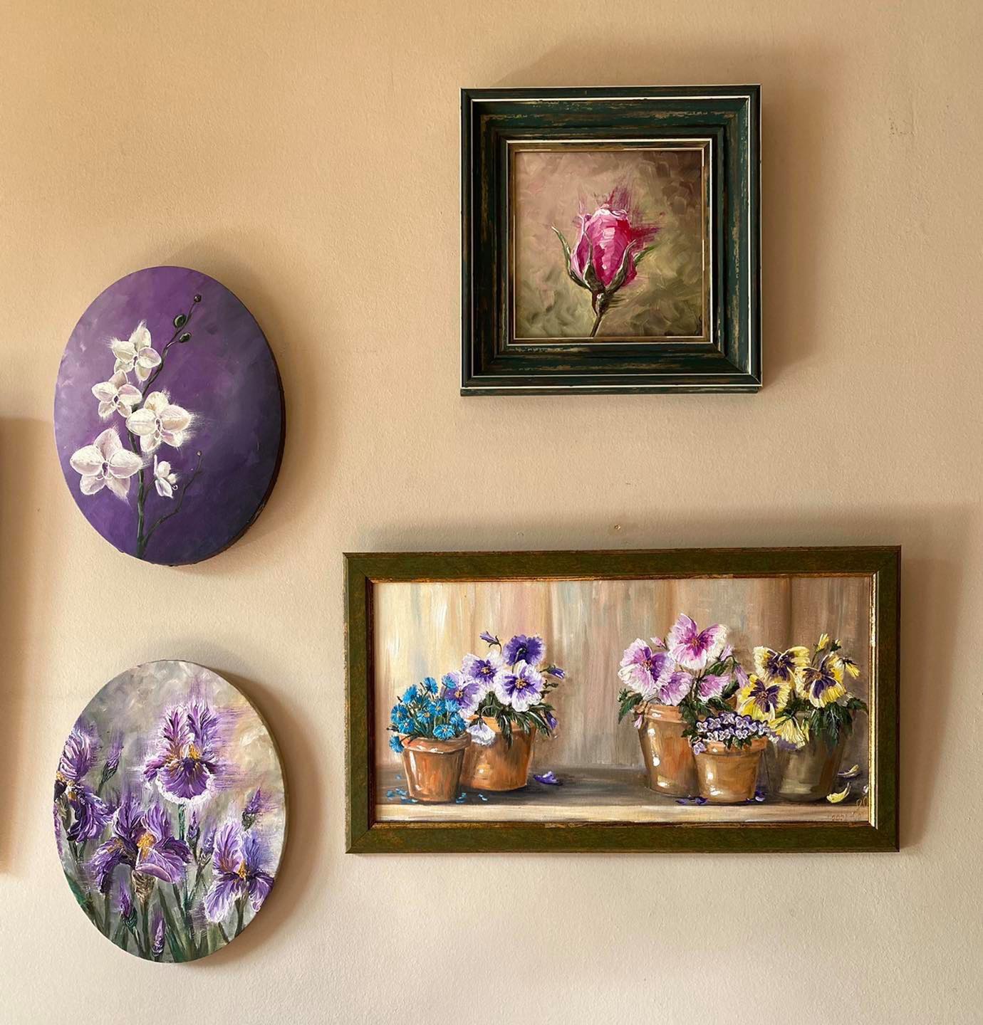– ხატავთ ხეზე ზეთის საღებავებით… შექმენით: ბროწეულების სერია, ყვავილები, პიონები, გოგრები, ნისლიანი ტყე, ზამთრის ჩიტები… ბალერინები… თითოეული ნამუშევარი ფერთა ულამაზესი შეხამებით გამოირჩევა…