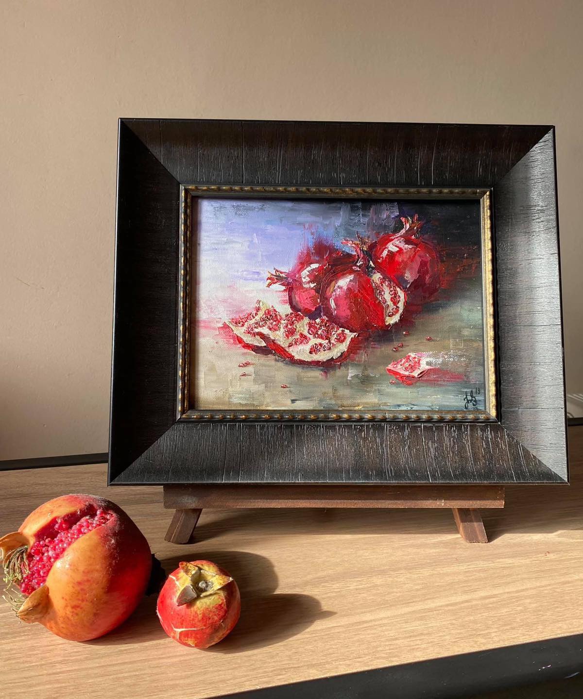 აუცილებლად გავაგრძელებ ყველასთვის სასურველი ბროწეულების სერიას, ბროწეული ხომ ბარაქის, ძლიერების სიმბოლოა. მექნება ზამთრის პეიზაჟების სერიაც, რომელზეც ეტაპობრივად უკვე ვმუშაობ. ვეცდები, ზამთრის ცივ დღეებს მეტი ფერადოვნება შევძინო. ჩემი მუდმივი დამკვეთებისთვის ამჯერადაც მექნება საახალწლო საჩუქრები.