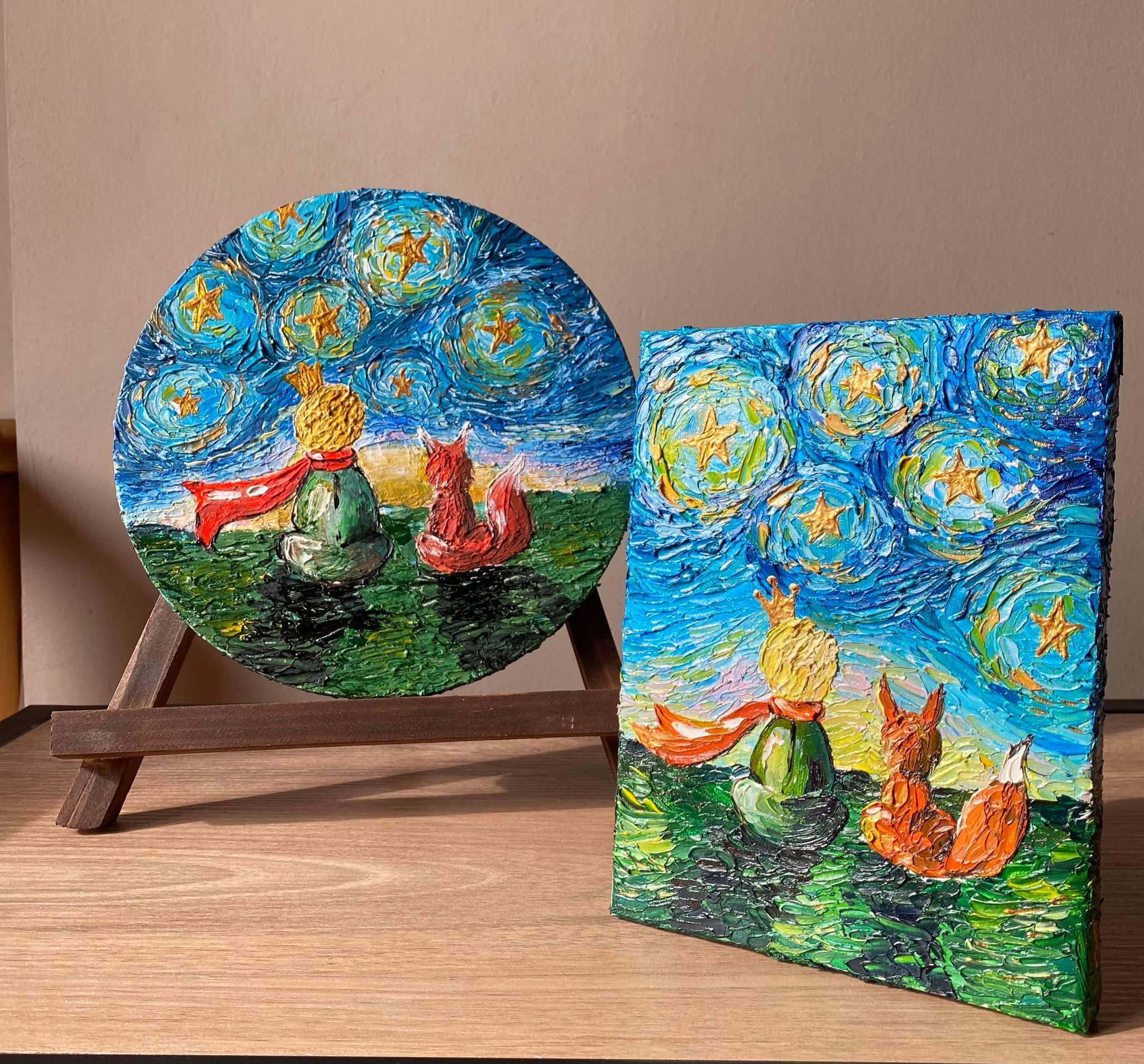 – „პატარა პრინცი“ ჩემთვის გამორჩეული ნამუშევარია, დღეს ის ძალიან კარგ ადამიანთან ცხოვრობს. ის ხომ ყველასათვის საყვარელი პერსონაჟია. ამ ნახატმა შემახვედრა ადამიანს, რომელთან ერთადაც ნამუშევრების განსაკუთრებული სერია შეიქმნა. ჯერჯერობით ისევ ვაგრძელებთ ამ თემაზე მუშაობას და როდესაც დასრულდება, აუცილებლად გაგაცნობთ შედეგს.